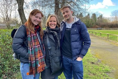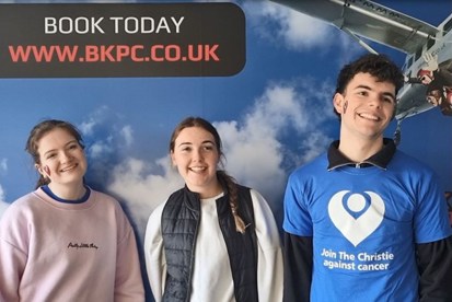 Ellie, Niamh and Matthew, Christie fundraisers and staff members