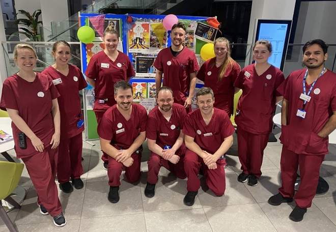 The day unit team put together a collection of photographs which show the different groups of staff members working amongst the PBT team. The board includes photographs of paediatric nurses, domestic staff, the TYA co-ordinator, anaesthetic staff, play specialists and radiographers.